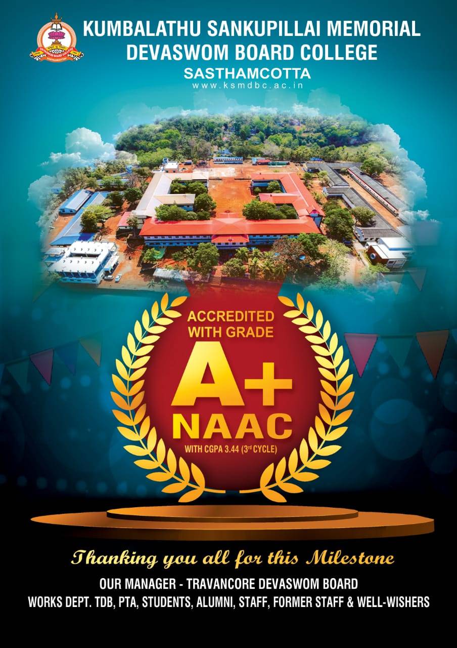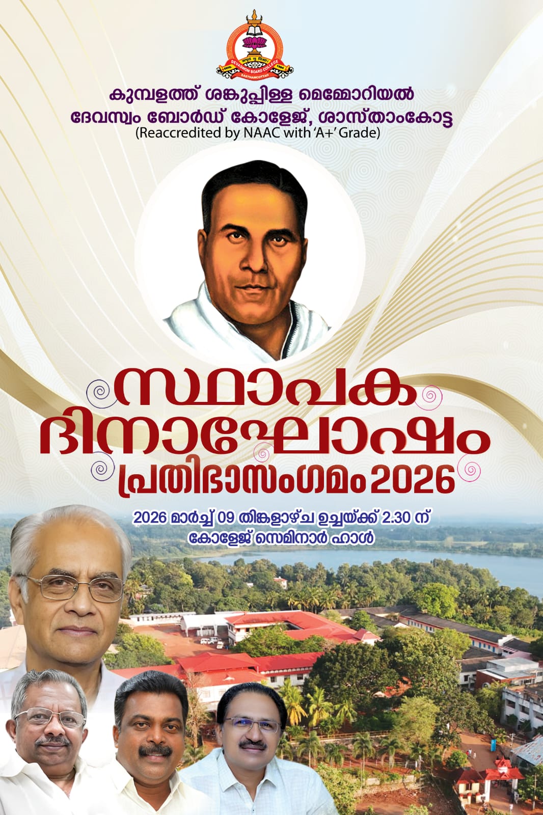 KSMDB College, Sasthamcotta, established in 1964 in Kunnathur taluk, takes its place in the annals of the history of South Kerala as a revered institution for higher education managed by the Hon’ble Travancore Devaswom Board, and affiliated to the University of Kerala. The college is blessed at the entrance by the temple of Lord Dharma Sastha and is set in the beautiful serene locale on a landmass surrounded on three sides by the famous Sasthamcotta lake, the largest freshwater lake of Kerala and a Ramsar site, lending an aura of grace, reverence for the environment and sense of oneness with the grandeur of Nature. The college was recognised by the University Grants Commission under the 2 (f) and 12 (B) schemes in 1977 and 1979 respectively. Starting with Pre degree courses, the college now caters to the demands of students for 17 undergraduate programmes, 7 post graduate courses, 2 PhD programmes and 2 Diploma programmes. The college strives to provide holistic education so as to mould students into citizens who are endowed with a value system and environment consciousness, while pursuing their academic ambitions. Throughout its history spanning over 60 years, the college has believed in discharging its social responsibility as an abode of higher education in the public sector catering mostly to the less privileged sections of the society.