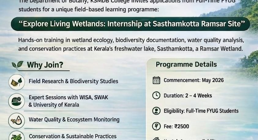 EXPLORE LIVING WETLANDS: INTERNSHIP AT SASTHAMKOTTA RAMSAR SITE
