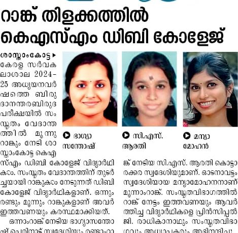 MA Sanskrit Vedanta Rank Holders University of Kerala 2024-2025
