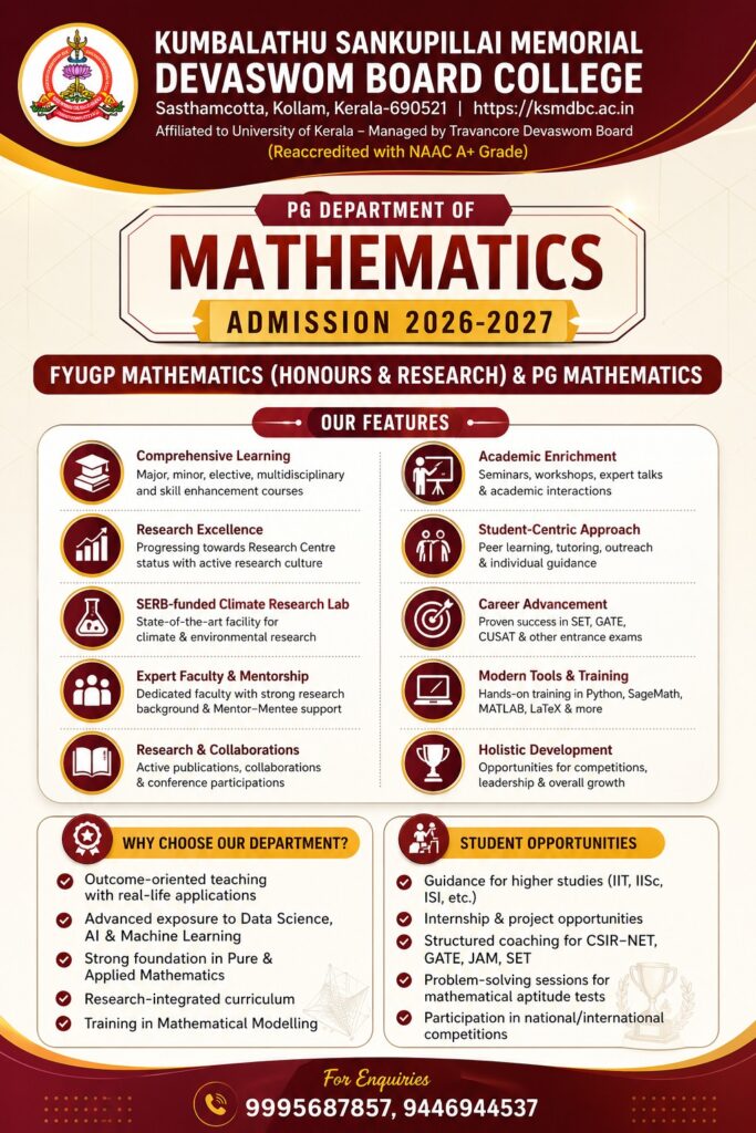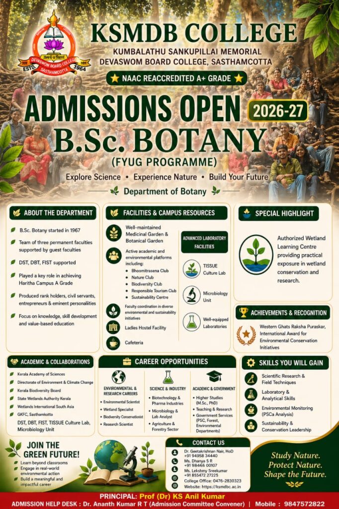 Sasthamcotta – Affiliated to University of Kerala – Managed by Travancore Devaswom Board