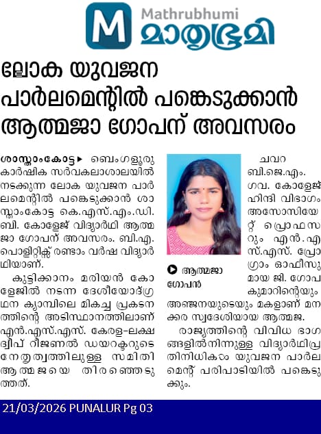 Ms Anjana and Ms Smrithi of Third DC Botany received appreciation from Nature Club World Wide, for their ecological conservation activities and academic excellence in Bhoomitrasena club, Biodiversity Club and Department of Botany