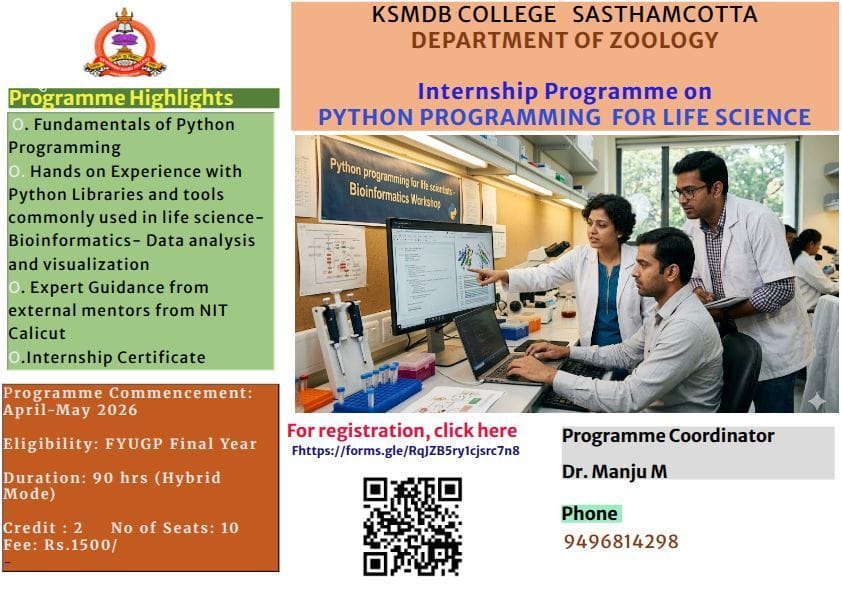 INTERNSHIP PROGRAMME ON: PYTHON PROGRAMMING FOR LIFE SCIENCE 16 Mar,2026 Bhavya@020822Leave a comment
