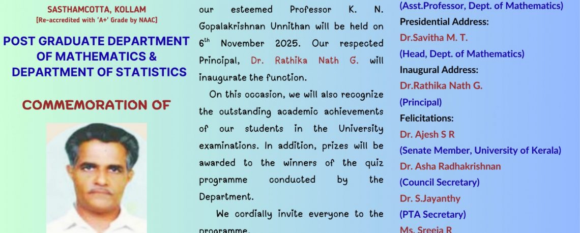 Prof. K. N. G. Unnithan Memorial Mathematics Quiz competition is conducted by the Post Graduate Department of Mathematics, KSMDB College, …